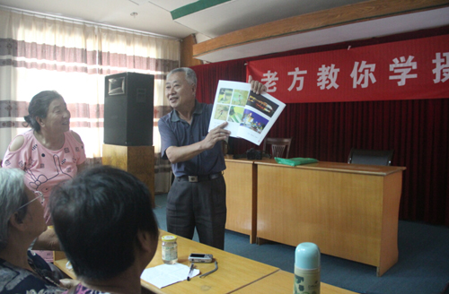 8月2日下午,在經(jīng)過(guò)半天休整之后,方老師開(kāi)始為團(tuán)員們講課!拔覀兝夏耆藨(yīng)該有自己的興趣和追求,要學(xué)會(huì)自己找樂(lè)。”“現(xiàn)在小孩都是老年人在帶,我們學(xué)會(huì)了攝影就可以教孩子,對(duì)他們將來(lái)也有好處。”方老師的一席話,頓時(shí)就讓許多團(tuán)員萌生了學(xué)攝影的想法。接著,他向團(tuán)員們展示了自己拍攝的眾多精彩照片,并拿出一本攝影圖集供大家傳閱。“這本圖集里,都是我在老年大學(xué)教書(shū)時(shí),學(xué)員們拍的照片。最大的學(xué)員都80多歲了,但是照片拍的特別好。相信大家通過(guò)學(xué)習(xí),也可以拍的如此精彩!狈嚼蠋煹脑挘o了在座的老人極大的信心,大家也學(xué)的更加認(rèn)真。