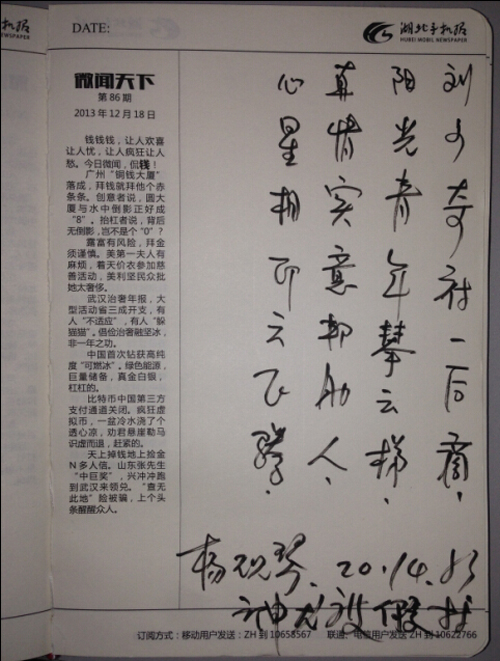 61歲的楊婆婆特有才,給方老師和手機(jī)報(bào)兩位工作人員各贈(zèng)詩(shī)一首